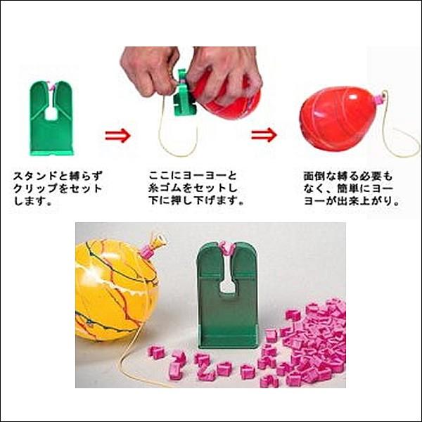 水ヨーヨー・ヨーヨー風船と風船を膨らますポンプや、セットをするだけで風船をしばらずにすむクリップが付いています。 作り方の説明書も付いていますので、初めての方でも簡単に作れます。 セット内容 ヨーヨー風船 100 ヶ 糸ゴム 100 本